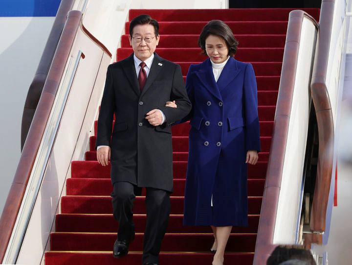 这场出访的穿搭亮相,不仅展现了第一夫人的优雅仪态,更藏着她与李在明相濡以沫的岁月故事,让蓝色大衣成为冬日里最动人的时尚注脚。