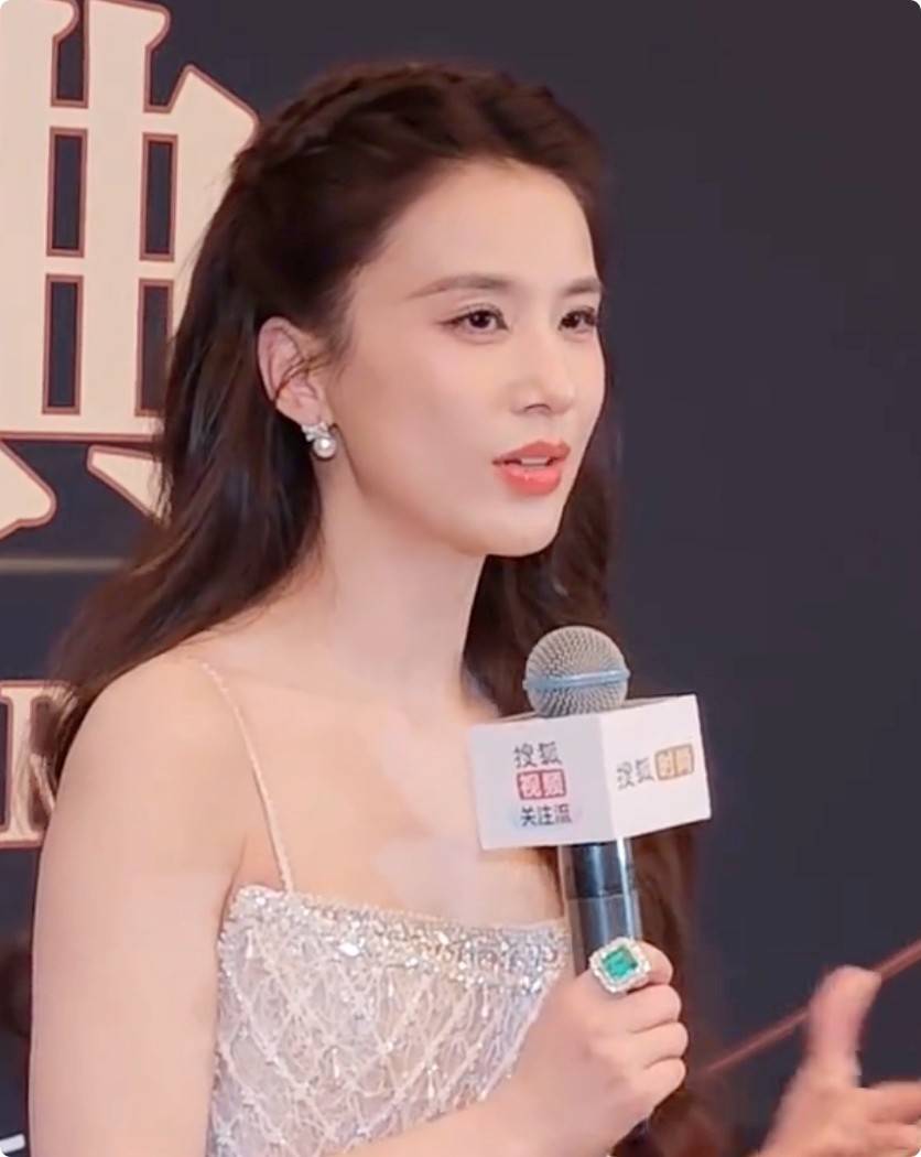 内场领奖时她换了个姿势坐,裙摆铺开像朵盛开的花,腰背挺得笔直,举手投足都是大家闺秀的范儿。获奖感言说得又真诚又得体,声音温柔但有力,听得人心里暖暖的。这时候再看她,哪是来领奖的?分明是来巡视领地的女王!